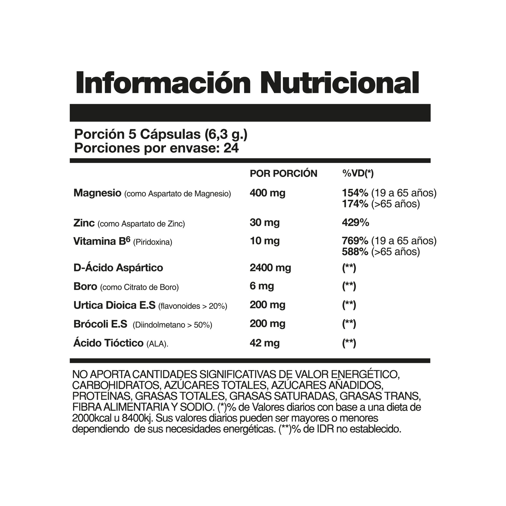 TESTO HIGH Es una exclusiva combinación de Ácido D-Aspártico, Magnesio, Zinc, Vitamina B6, Boro, Urtica Dioica y Diindolmetano estandarizados que de forma natural y científicamente comprobado, regulan de forma positivas las hormonas, aumentando testosterona y disminuyendo estrógenos y cortisol.